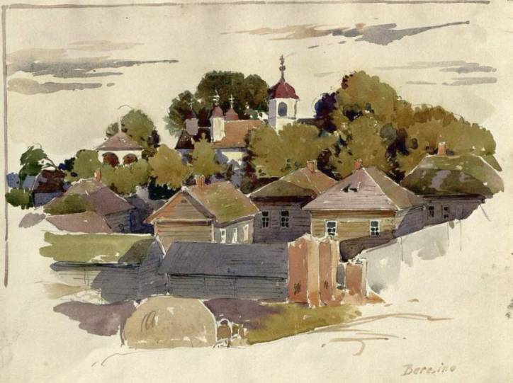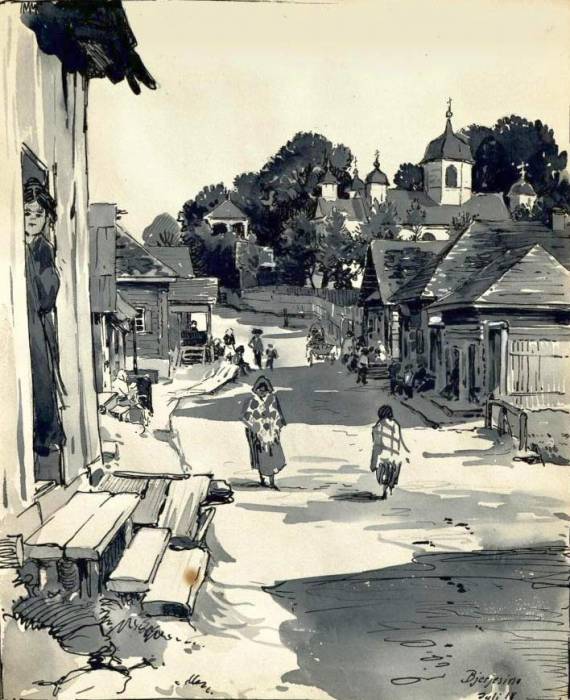 Фрагмент вуліцы ў Беразіно з відам на Праабражэнскую царкву.