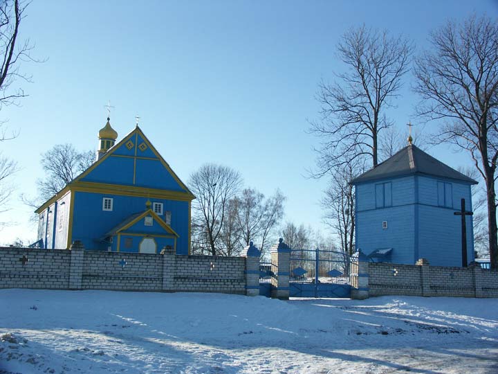 Церковь - памятник народного зодчества. Стоит на небольшом холме в центре деревни. Рядом с церковью четвериковая каркасная колокольня под шатровой крышей. Территория церкви обнесена каменной оградой.