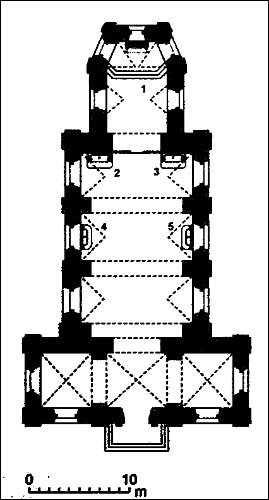 Plan kościoła. Rekonstrukcja stanu na koniec XVIII w ('Świątynie katolickie' T 1, Pro Christo 2003 r)